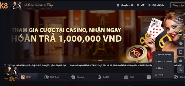 Nhà cái K8 chính là địa chỉ cá cược được thành lập dựa trên sự cấp phép và giám sát của đất nước Philippines. Với hệ thống được thiết kế riêng tông màu đỏ thẫm chủ đạo rất đẳng cấp, sang trọng và nổi bật. Không những thế các sản phẩm, danh mục và thông tin cần thiết đều được trình bày bố cục rất khoa học, logic dễ dàng quan sát, dễ sử dụng cho mọi đối tượng người chơi.